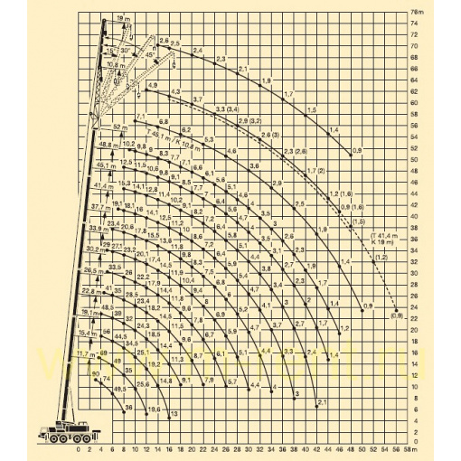 Max. вантажопідйомність: 70 тонн при вильоті стріли до 3 метри
